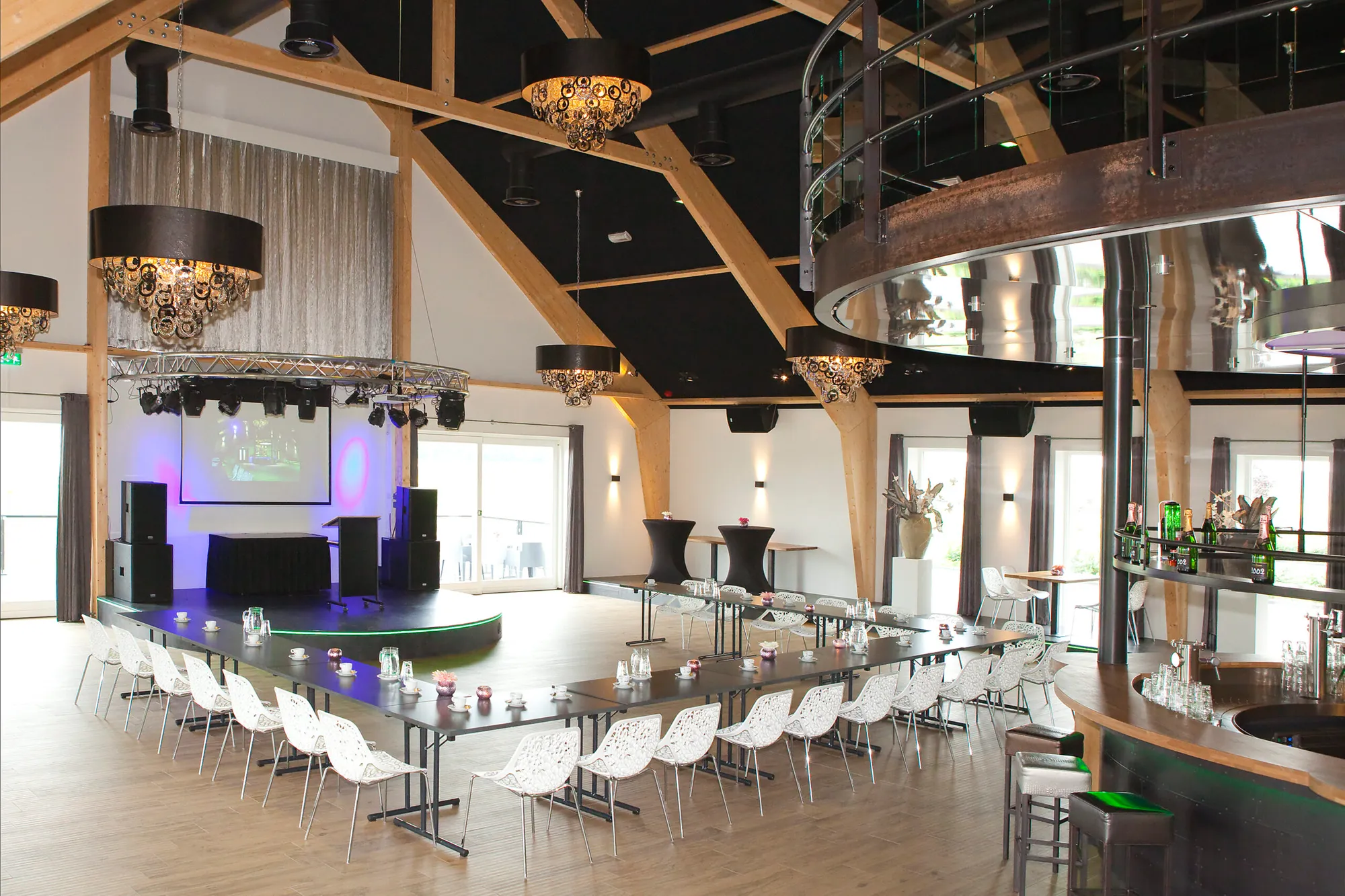 De Landzaal is onze grootste vergaderruimte: een prachtige zaal met hoge houten balken, veel daglicht en een weids uitzicht. Dankzij het eigen terras en de moderne faciliteiten is deze ruimte ideaal voor plenaire sessies, conferenties of bedrijfsbijeenkomsten.